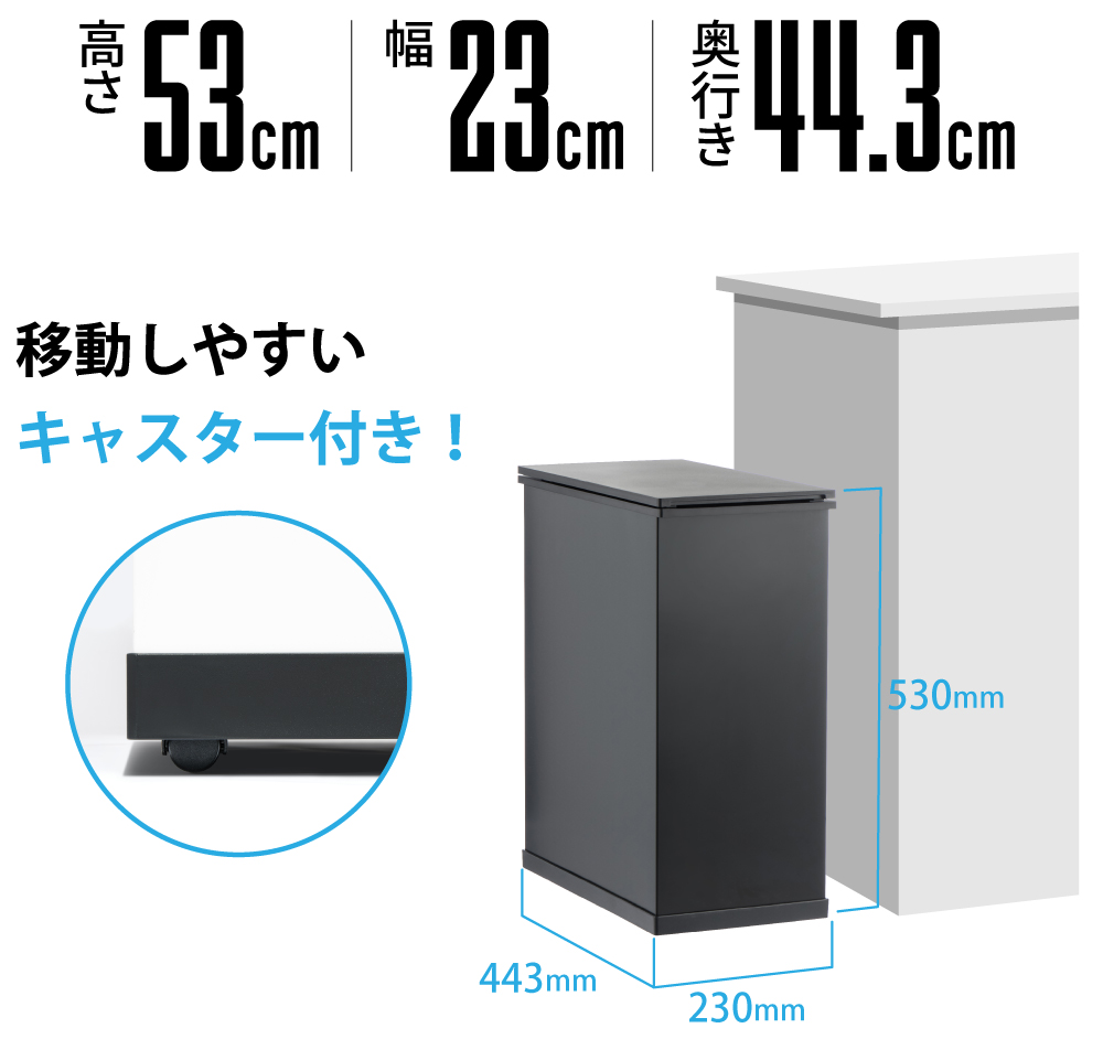 シンクや家具下にも収まる高さで、置き場所の自由度が広がります。