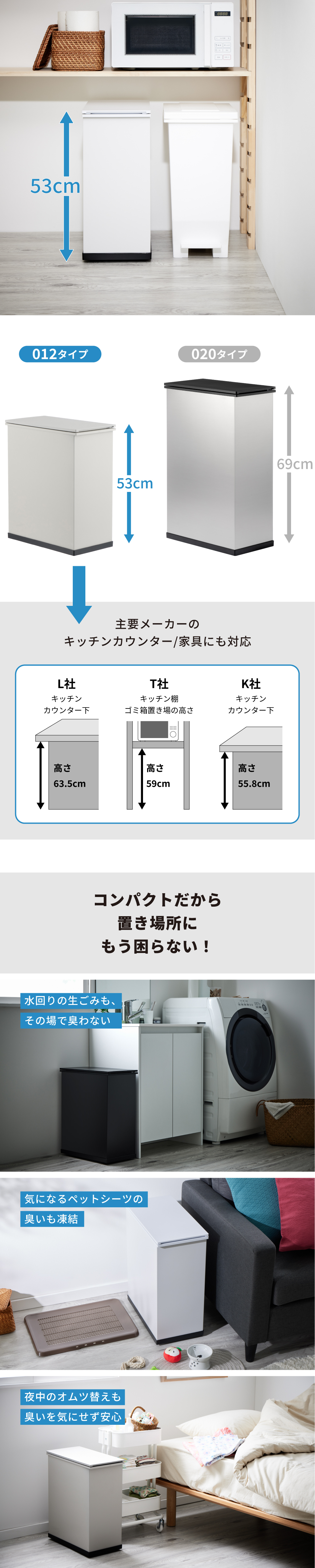 キッチンや寝室に置けるから臭いを気にせず快適に!