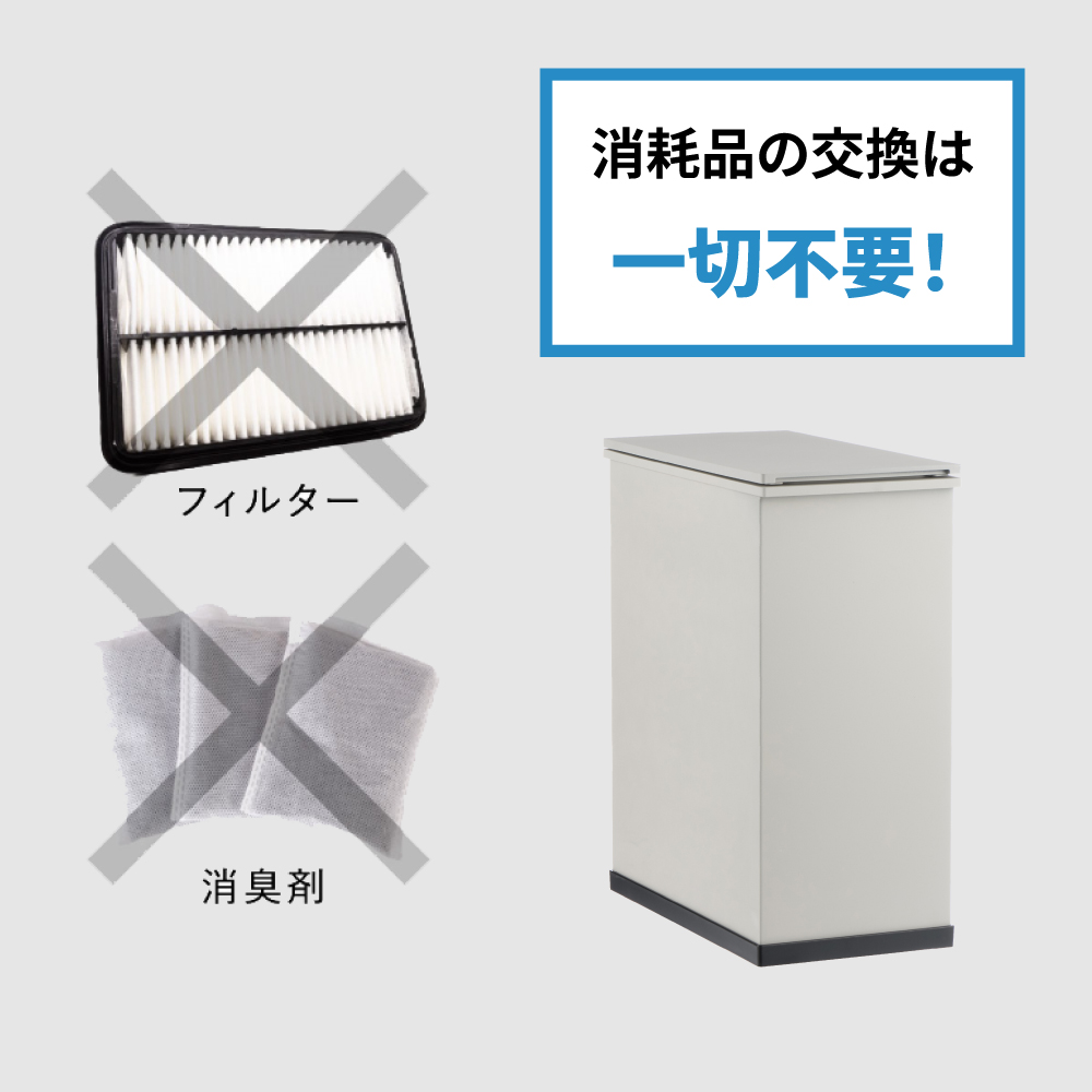 消臭剤や専用フィルターの交換は一切不要です!