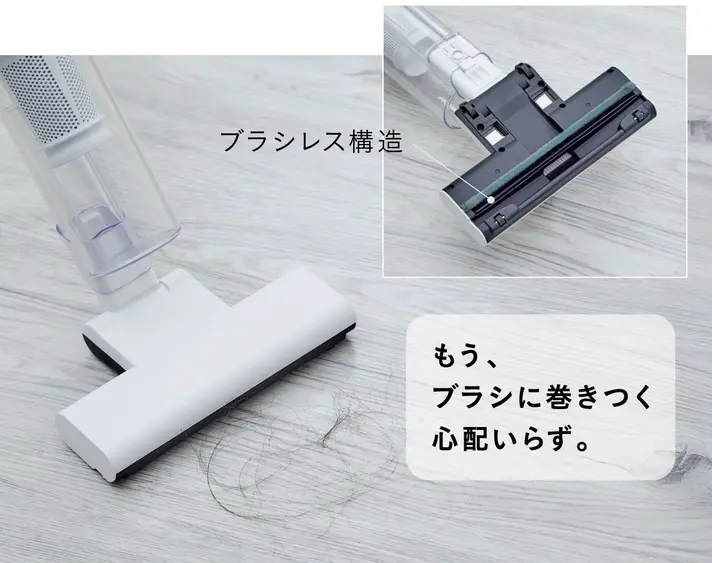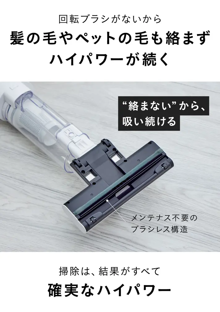 毛が絡まず、掃除のたびに吸引力を維持します。