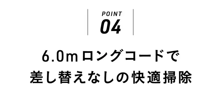 コードレス特有の「出力ムラ」や「電池劣化」に左右されず、どんな床材でも安定した吸引力を発揮します。