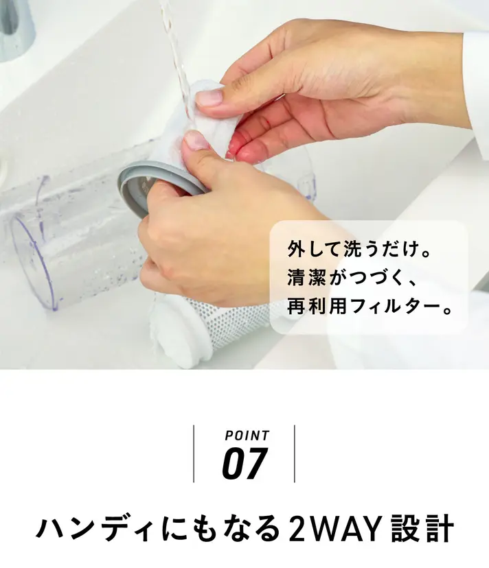 さらに、フィルター・ダストカップ・サイクロンセパレーター・排気フィルターは丸ごと水洗いOK。