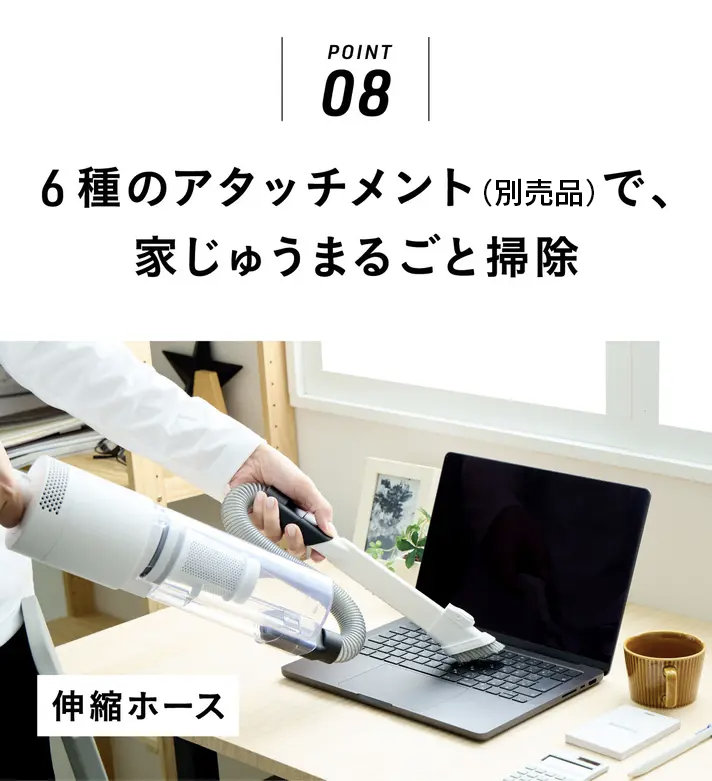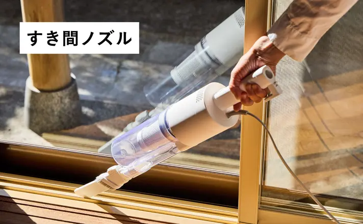 家具の隙間、家電の間、壁際、キーボード周辺など、狭くて手が届きにくい部分のゴミを吸い取るのに最適