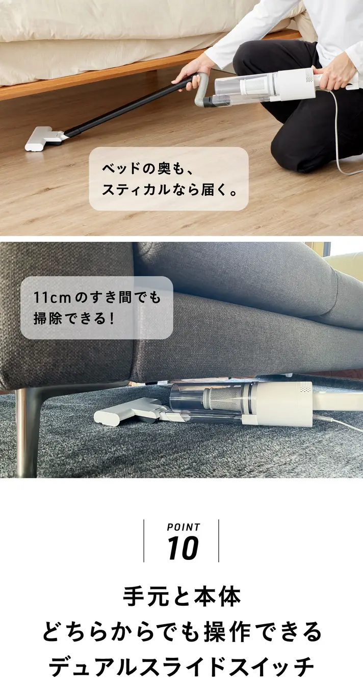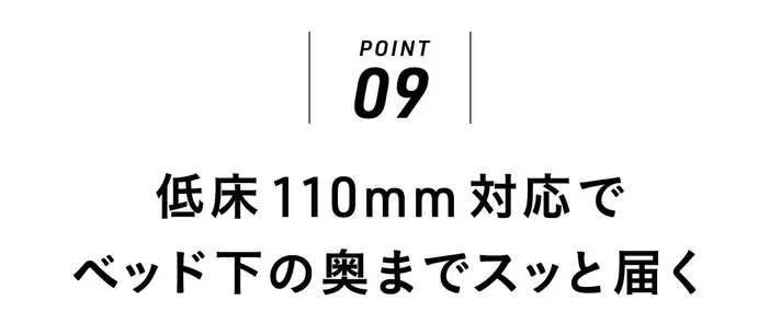 ベッド下やソファ下など、これまで手が届かなかった場所にもスッと入ります。