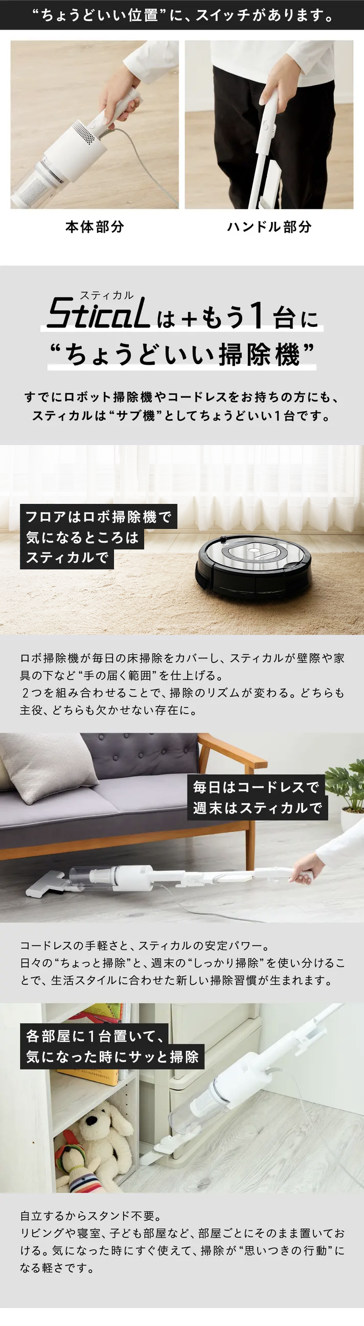 スティカルは、パイプを外すだけでハンディクリーナーに変形。